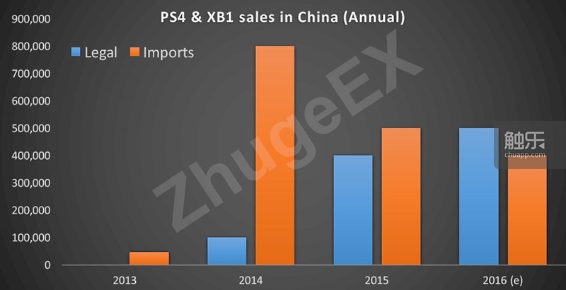 主机游戏(准确地说,是所有游戏)所遭受的困境无疑与2000年至2014年间的所谓“游戏禁令”有直接关系。然而,即使在“游戏禁令”解除之后,国内主机游戏市场的发展速度也远远不及网络游戏和手机游戏。 迄今为止,索尼并未公布国行PS4销量的数据。但根据一份来自newzoo的统计报告,国内行货主机的销量一共是100万台左右,而非国行(通过各种渠道购买的水货)主机的数量约为国行的2倍。也就是说,目前国内的主机装机总量大概只有300万台,这还是索尼和微软加在一起的数字,即使算上增长,这个数字也不会超过400到500万。这单独看来还没什么,不过只要一对比就能看出问题——今年年初,索尼互动娱乐社长小寺刚在接受采访时表示,PS4的全球销量已经超过了7900万台。Xbox One销量虽不及PS4,但也有3700多万。
