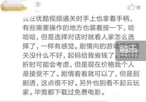 “云玩家”借用的也是这一点:“把别人的资源当成我的资源”——我不需要买主机、买游戏、课金,主播买了就当是我买的;“把成果当成自己的”——我不需要玩这个游戏,主播玩过之后在直播、视频或帖子里表达了他对游戏的观点和评价,那么我就可以当做自己的观点,并在活动范围内四处传播。 这看上去越来越像一个语言学问题——一个概念是如何从一个词语到另一个词语的传播过程中发生演变的。毕竟云计算的“云”还是人们从自身需求出发而借助的一种工具(或者服务),云玩家则干脆把它当成了“自己什么都不用干,只在网上看看就行”的同义词。 更重要的是,云玩家认为自己获得的是游戏体验。然而实际上,作为一种互动性很强的艺术形式,游戏带给玩家们的体验毫无疑问需要通过亲自游玩来获得,正如在《现代汉语词典》中,“体验”这个词本身指的就是“通过实践来认识周围的事物”和“亲身经历”一样。从这个角度看,云玩家获得的是“观看游戏的体验”,这与游戏体验有着本质上的不同。一旦二者被混淆讨论,而又有明显的分歧时,云玩家们往往会因为立场上的弱势而成为被抨击的对象。
